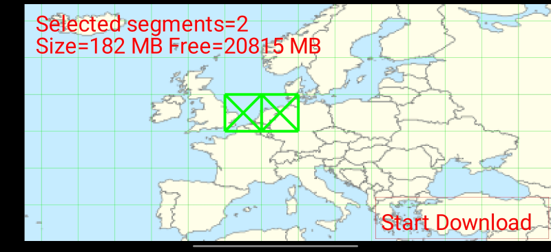 - Zoomez et sélectionnez les zones dans lesquelles vous souhaitez effectuer le routage. Cliquez ensuite sur "Démarrer le téléchargement" et BRouter commencera à télécharger les fichiers de segments pour les zones sélectionnées.